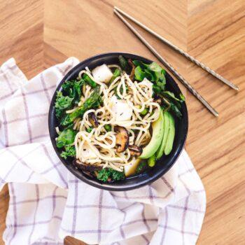 Domáci hubový vývar dodáva tomuto vegánskemu ramenu bohatú chuť umami. Je plný rezancov,...